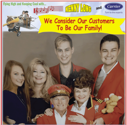 One of our successful consistent advertisements is a specially written song, “Flying High and Keeping Cool with Kenny Long and Carrier”.